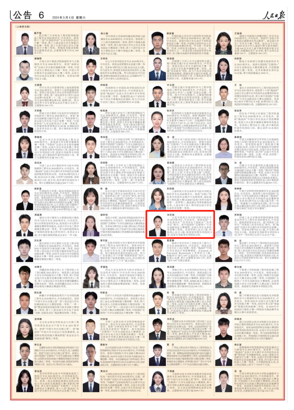 5月4日出版的《人民日报》,从全国6万名荣获2022—2023学年度国家奖学金的优秀本专科学生中选拔出100名学生作为本专科生国家奖学金获奖学生的优秀代表将他们的事迹予以刊登。其中,山东省共有包括快猫短视频 刘艺旋在内的4名学生入选。