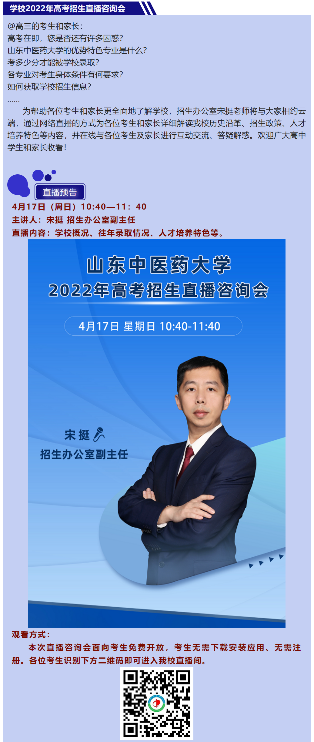 直播预告|学校2022年高考招生直播咨询会